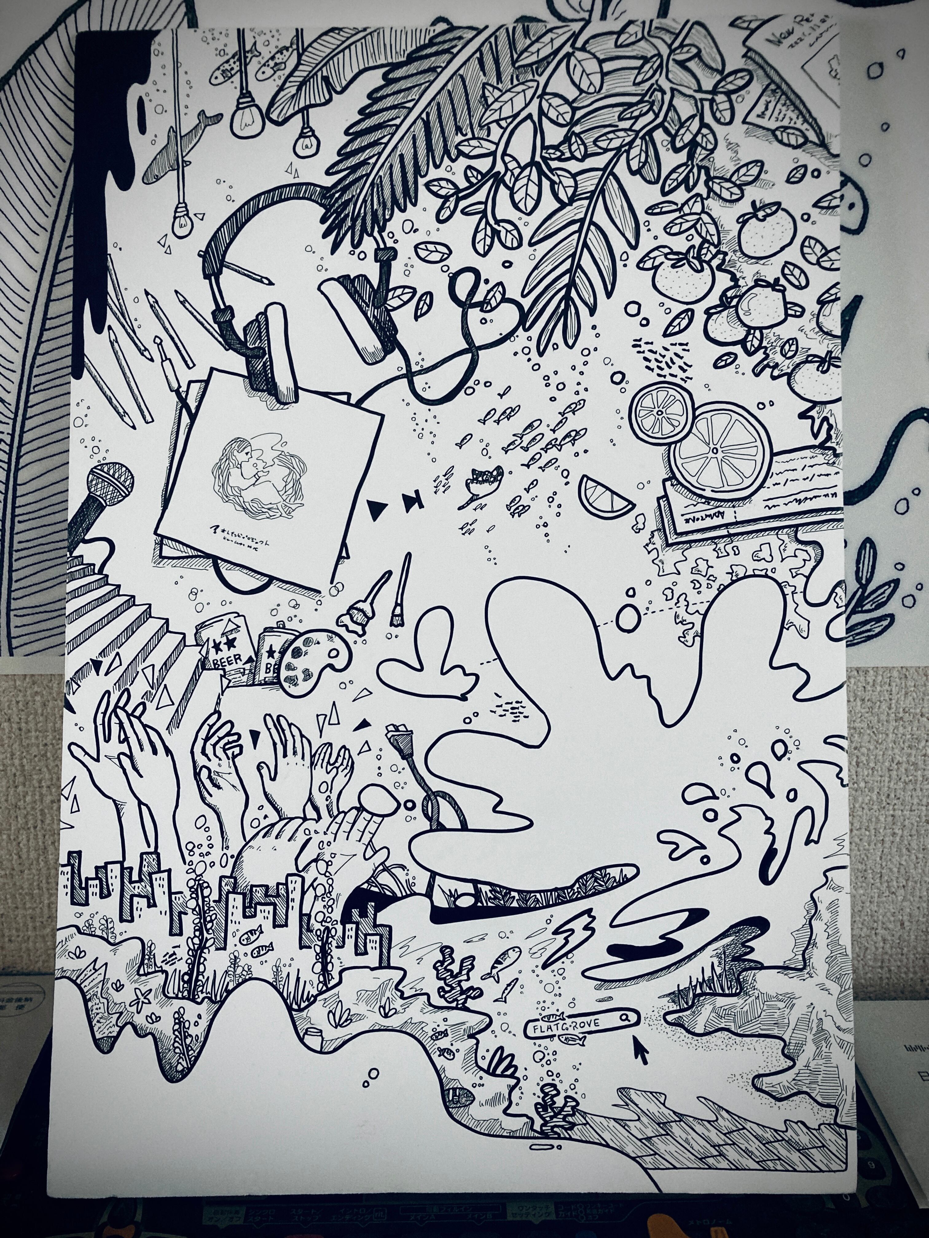 「転がる日々」のイメージ、希望・未来・音楽・ライブの記憶・不安・色彩・生命を表現しました。